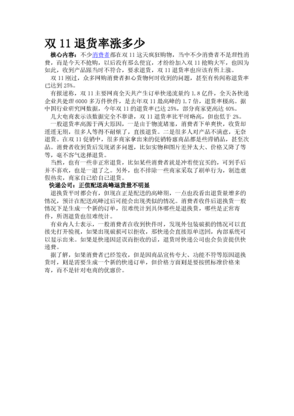 雙11退貨率漲多少