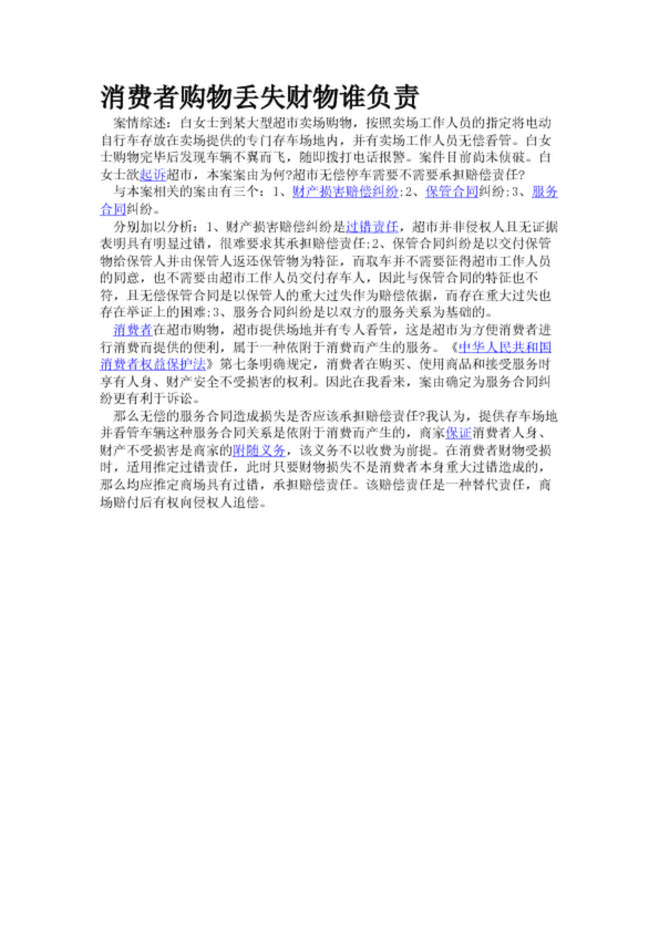 消費者購物丟失財物誰負責(20.01KB)