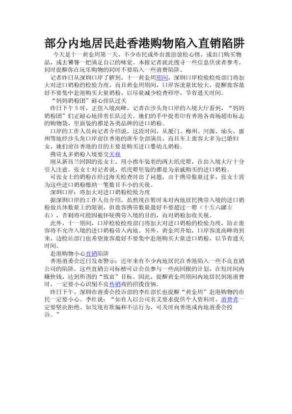 部分內地居民赴香港購物陷入直銷陷阱(21.63KB)