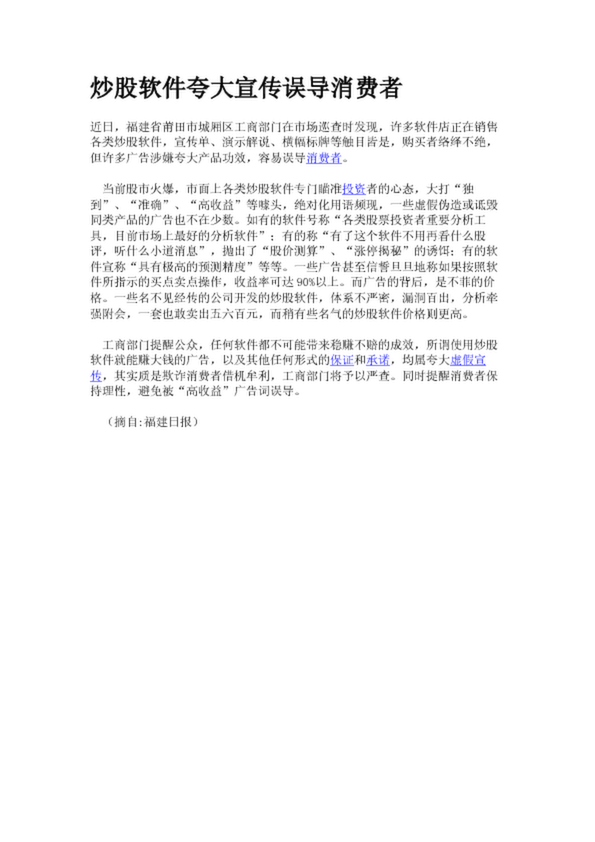 炒股軟件夸大宣傳誤導消費者