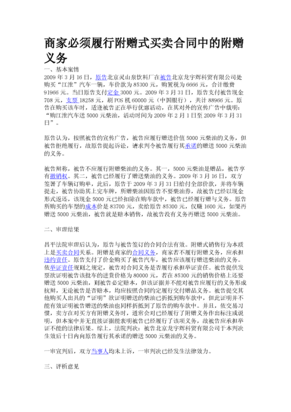 商家必須履行附贈(zèng)式買賣合同中的附贈(zèng)義務(wù)
