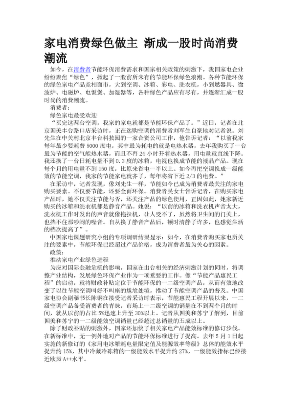 家電消費綠色做主 漸成一股時尚消費潮流