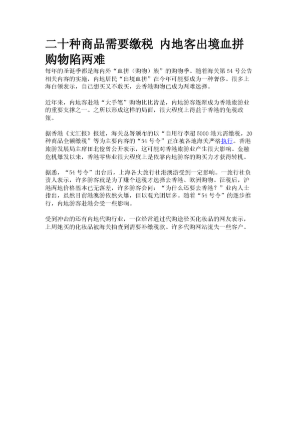二十種商品需要繳稅 內(nèi)地客出境血拼購物陷兩難