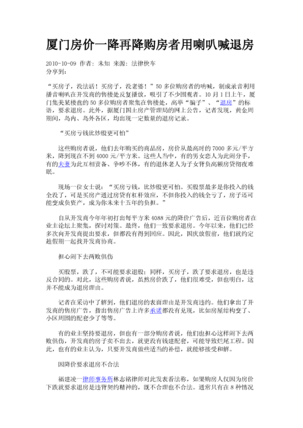 廈門房價一降再降購房者用喇叭喊退房(4.67KB)