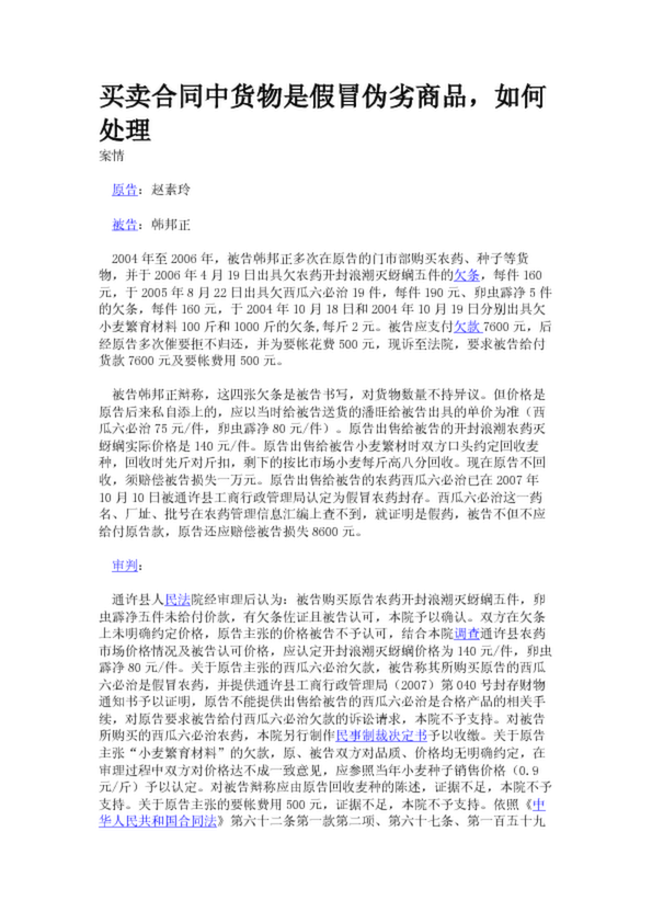 買賣合同中貨物是假冒偽劣商品,如何處理
