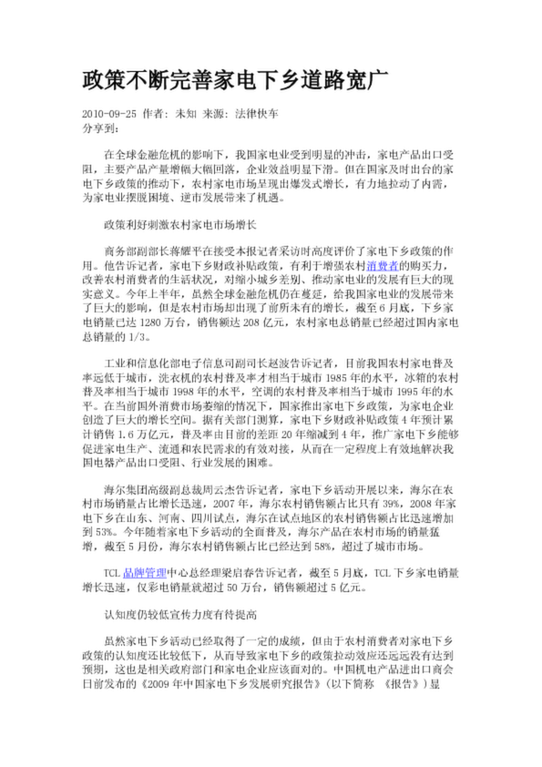 政策不斷完善家電下鄉道路寬廣(8.86KB)