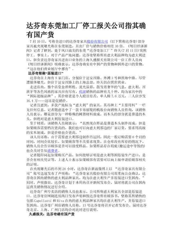 達芬奇東莞加工廠停工報關公司指其確有國產貨(23.70KB)