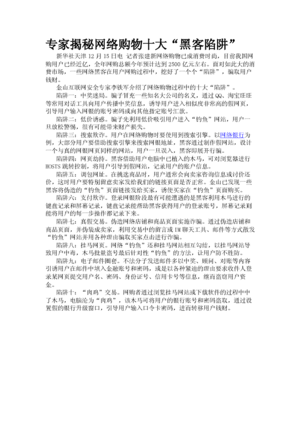 專家揭秘網絡購物十大“黑客陷阱”(20.27KB)