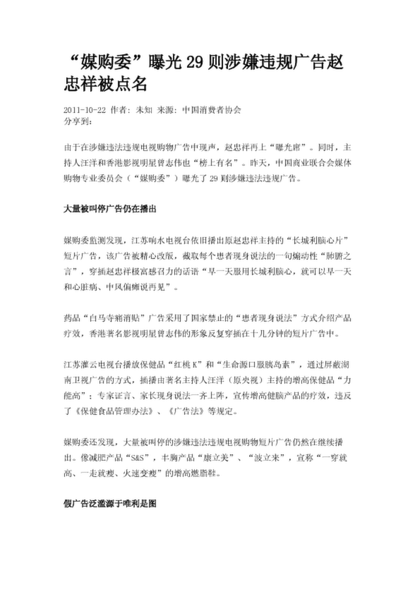 “媒購委”曝光29則涉嫌違規廣告趙忠祥被點名