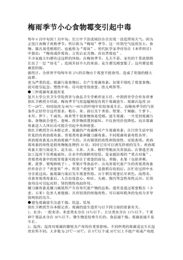 梅雨季節小心食物霉變引起中毒