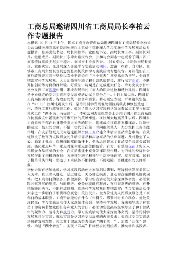 工商總局邀請(qǐng)四川省工商局局長(zhǎng)李柏云作專題報(bào)告