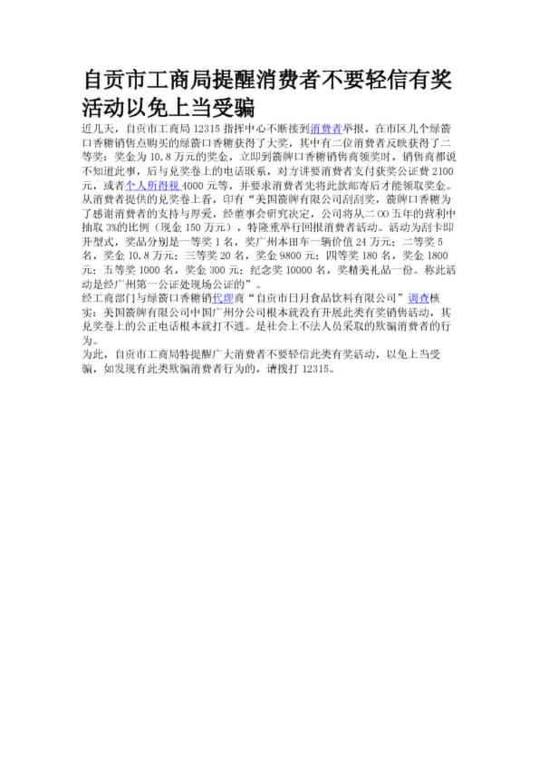 自貢市工商局提醒消費者不要輕信有獎活動以免上當受騙(17.71KB)