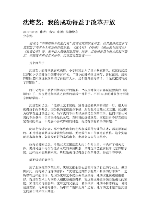 沈培藝:我的成功得益于改革開放(7.26KB)