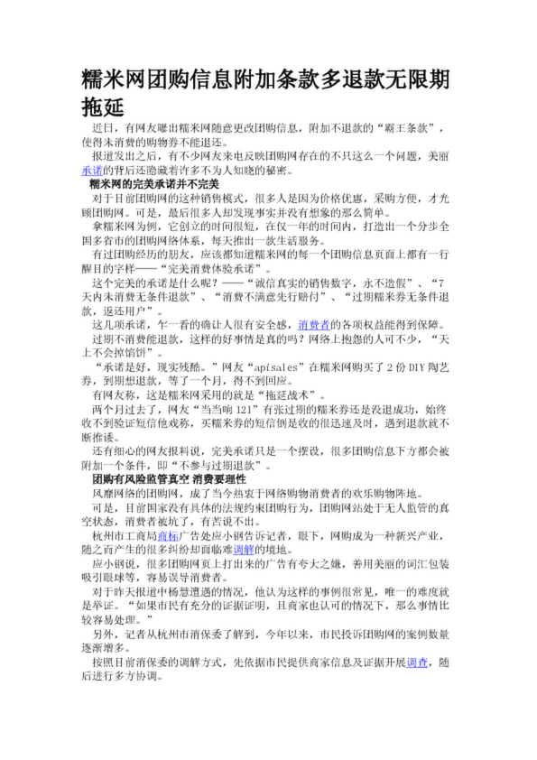 糯米網團購信息附加條款多退款無限期拖延