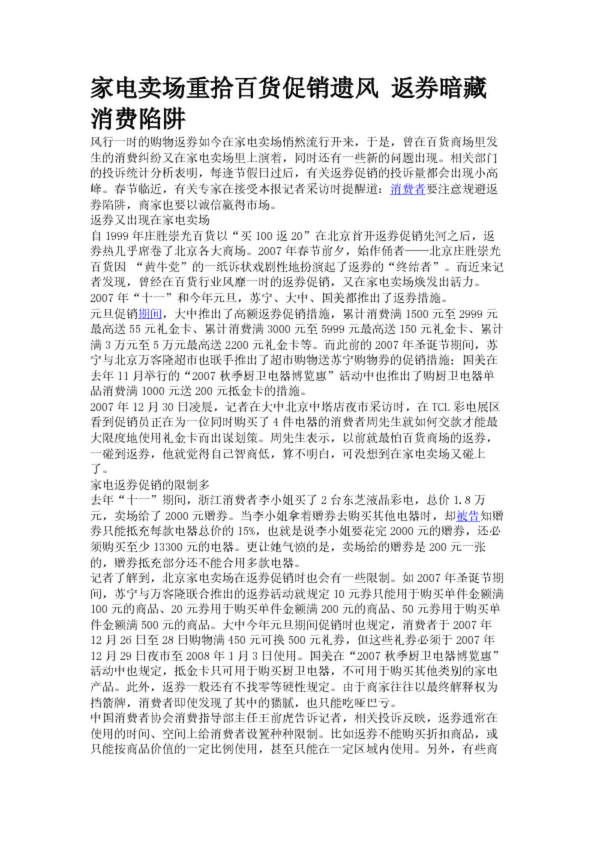 家電賣場(chǎng)重拾百貨促銷遺風(fēng) 返券暗藏消費(fèi)陷阱