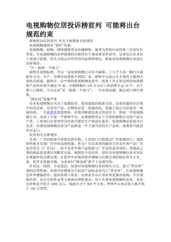 電視購物位居投訴榜前列 可能將出臺規范約束(18.84KB)