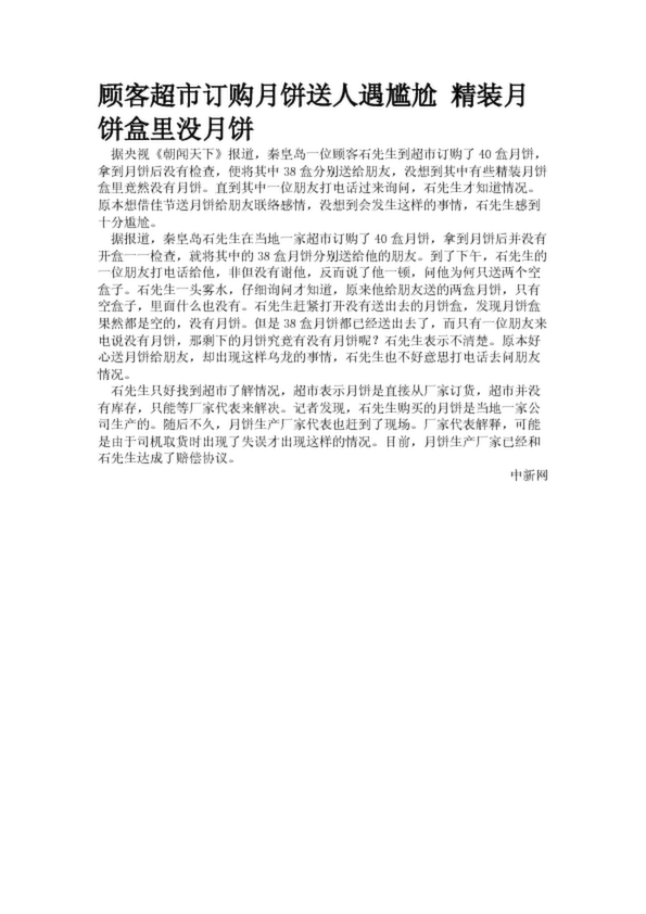 顧客超市訂購(gòu)月餅送人遇尷尬 精裝月餅盒里沒(méi)月餅