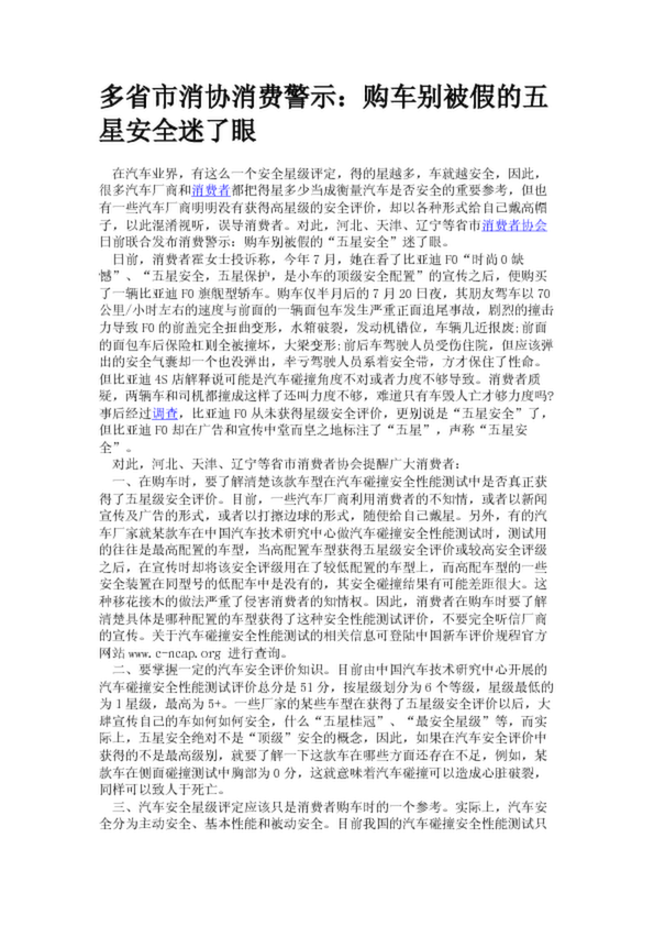 多省市消協消費警示:購車別被假的五星安全迷了眼(20.91KB)