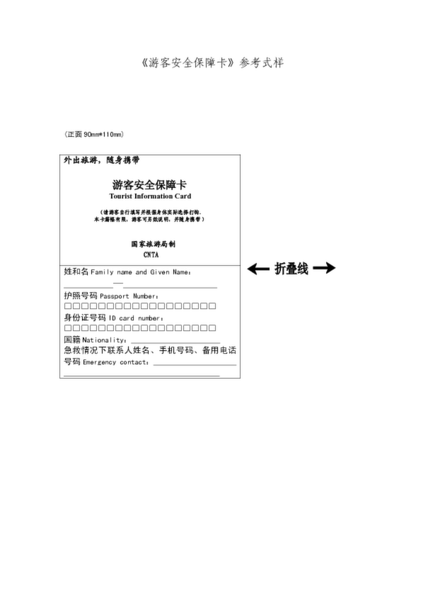 《游客安全保障卡》參考式樣