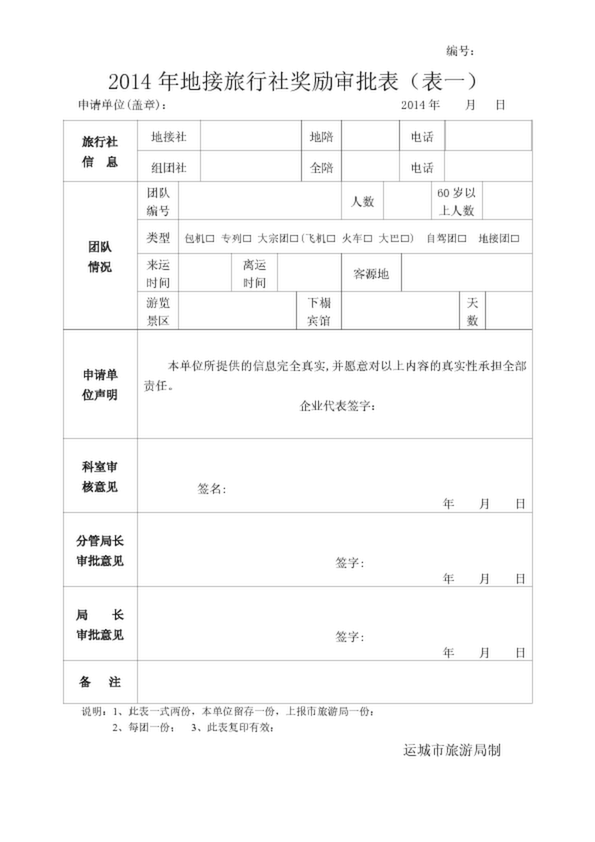 2014年地接旅行社獎勵審批表