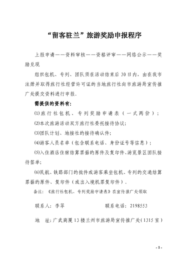 “留客駐蘭”旅游獎(jiǎng)勵(lì)申報(bào)程序
