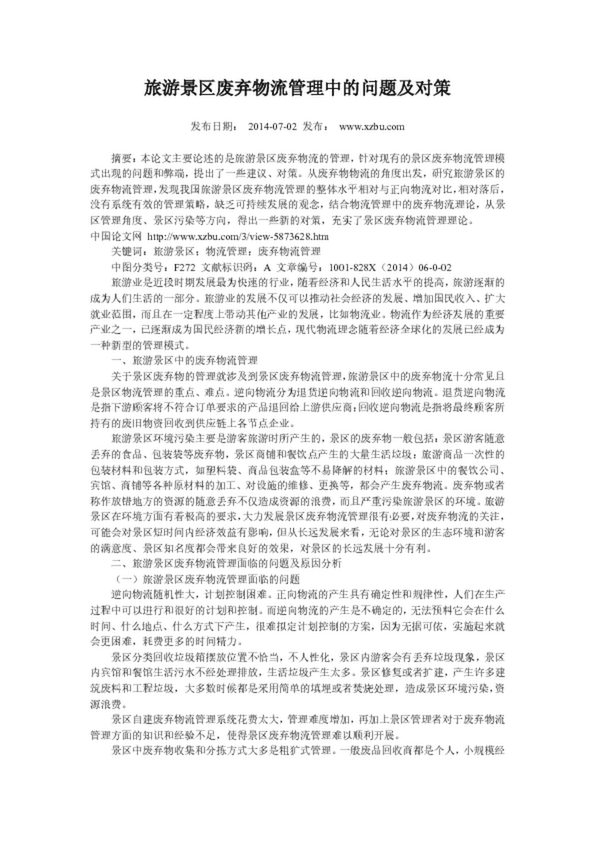 旅游景區(qū)廢棄物流管理中的問(wèn)題及對(duì)策