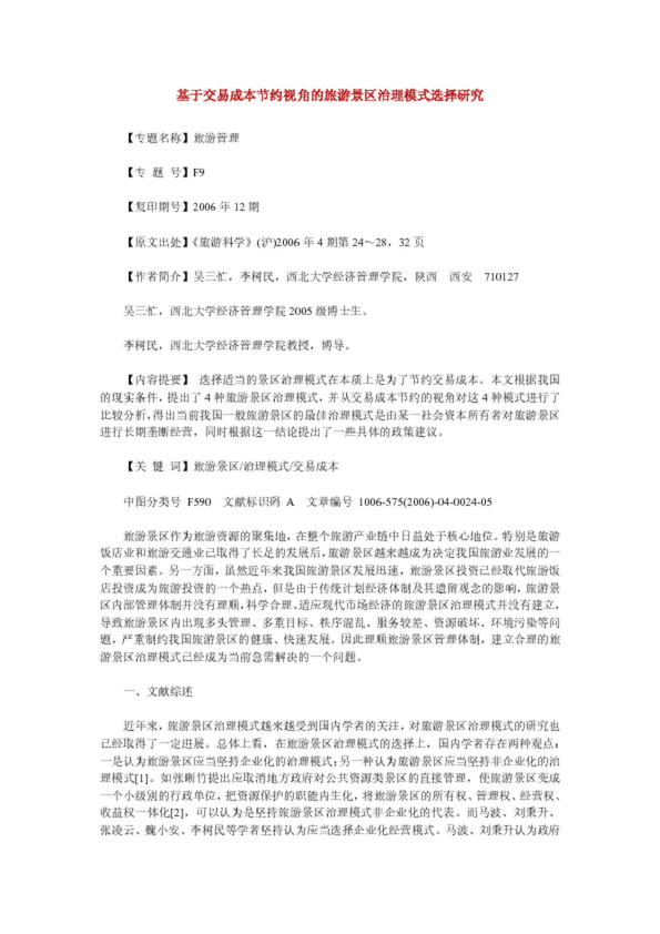 基于交易成本節約視角的旅游景區治理模式選擇研究(30.50KB)