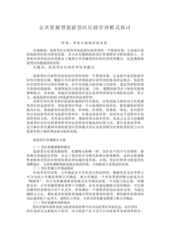 公共資源型旅游景區行政管理模式探討