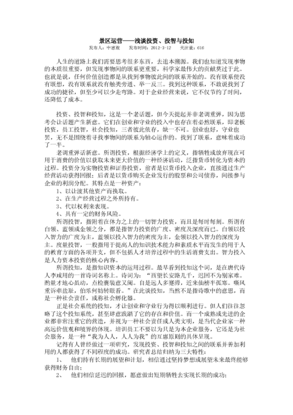 景區運營——淺談投資、投智與投知