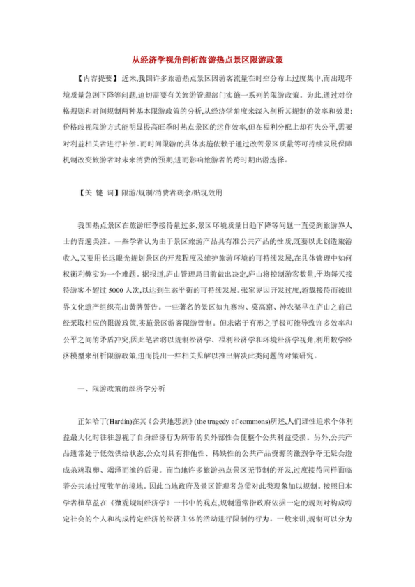 從經濟學視角剖析旅游熱點景區限游政策(20.50KB)