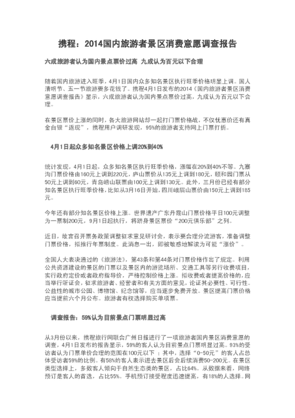 攜程:2014國內旅游者景區消費意愿調查報告