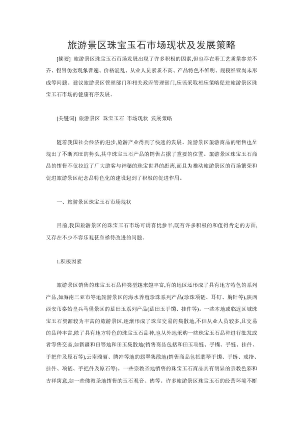 旅游景區珠寶玉石市場現狀及發展策略