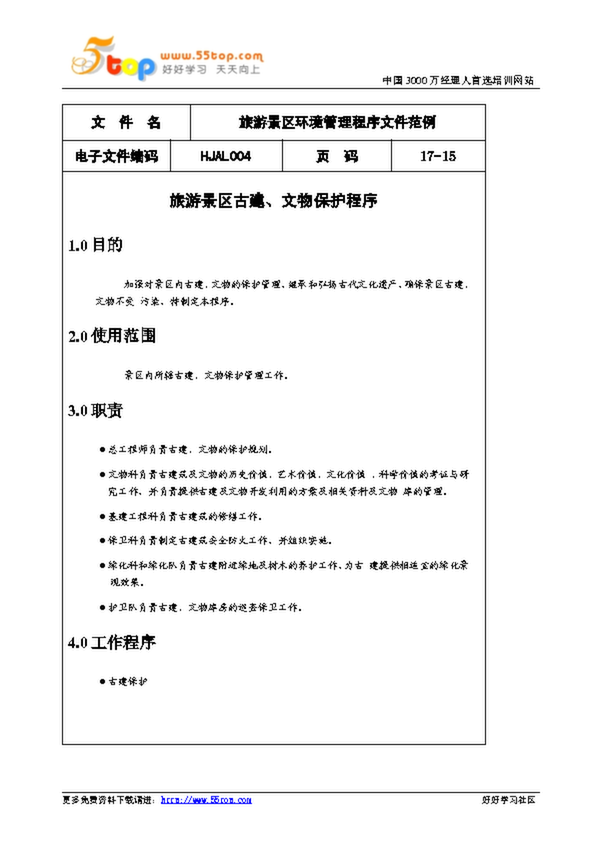 旅游景區環境管理程序文件范例_古建文物保護程序