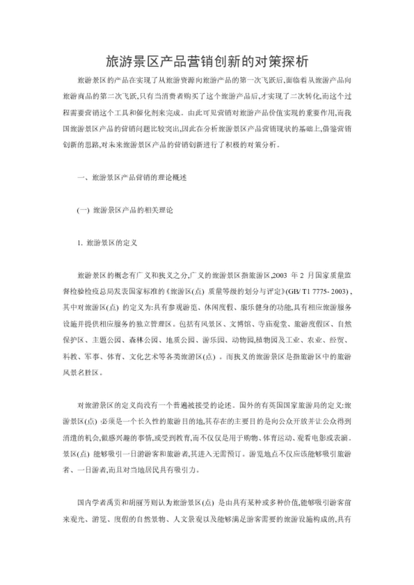 旅游景區(qū)產(chǎn)品營銷創(chuàng)新的對策探析