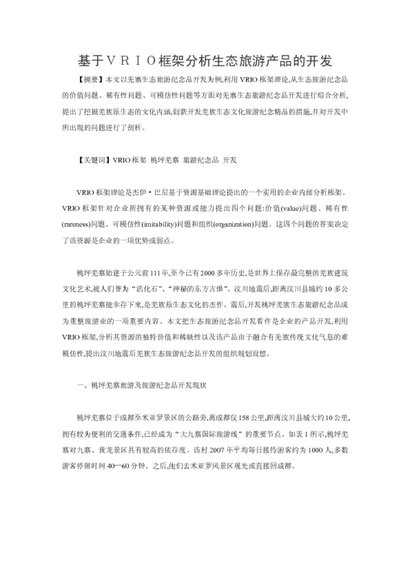 基于VRIO框架分析生態(tài)旅游產(chǎn)品的開發(fā)