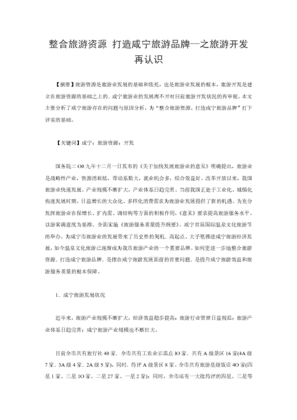 整合旅游資源 打造咸寧旅游品牌—之旅游開發(fā)再認識