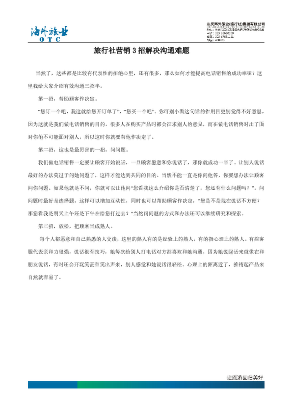 旅行社營銷3招解決溝通難題,本文旅行社開展網絡營銷中存在的問題,并提出了解決...