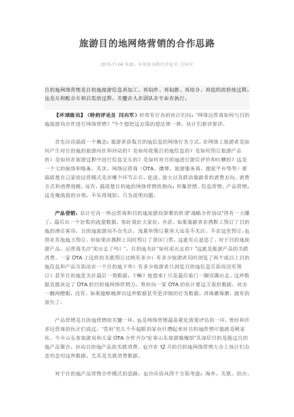 旅游目的地網(wǎng)絡(luò)營銷的合作思路