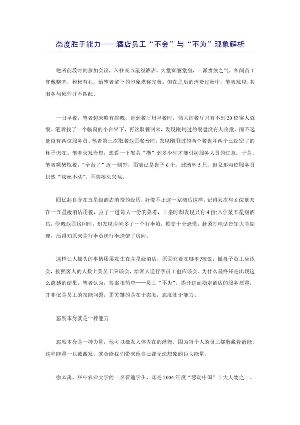 態度勝于能力——酒店員工“不會”與“不為”現象解析(24.50KB)