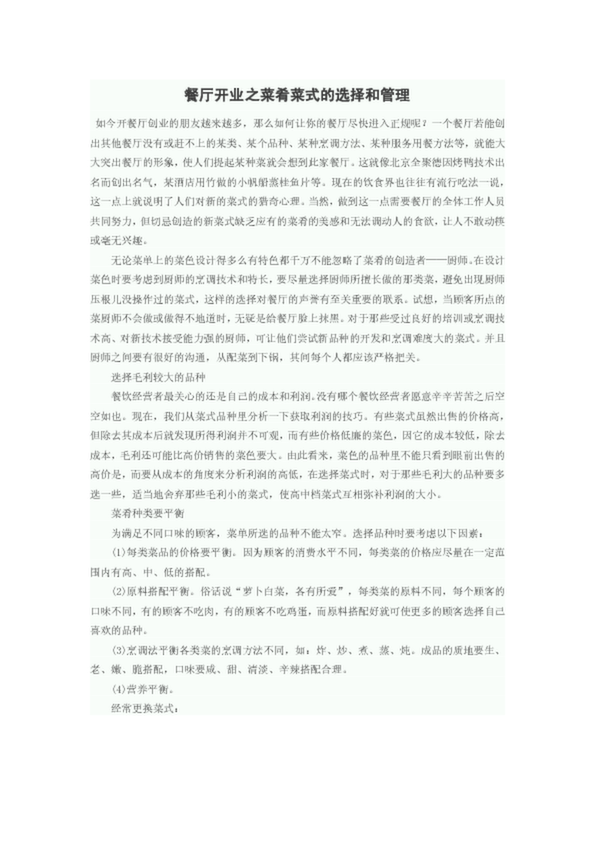 餐廳開業之菜肴菜式的選擇和管理(28.50KB)