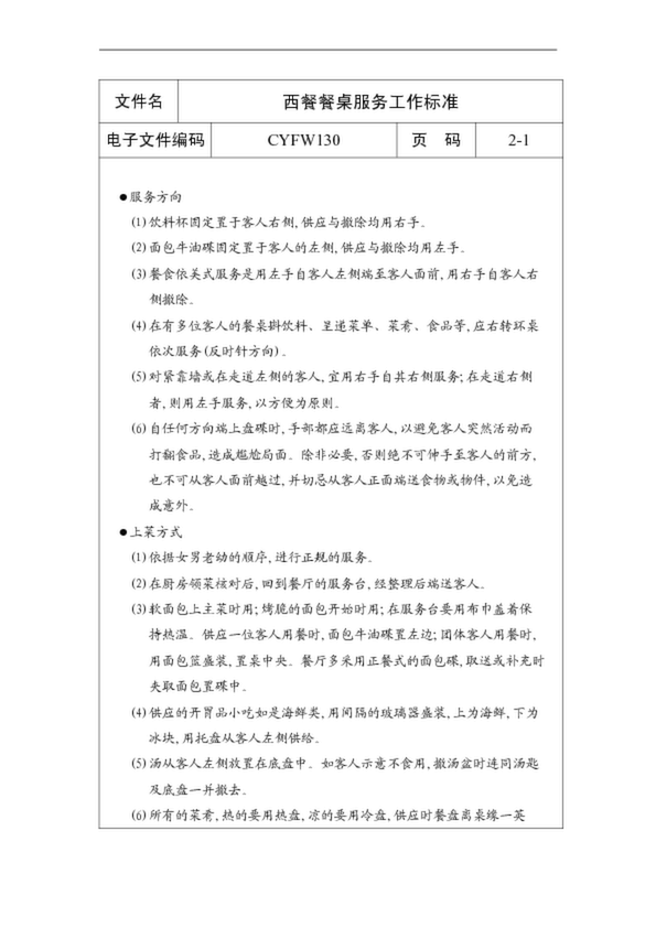 西餐餐桌服務工作標準(34.50KB)