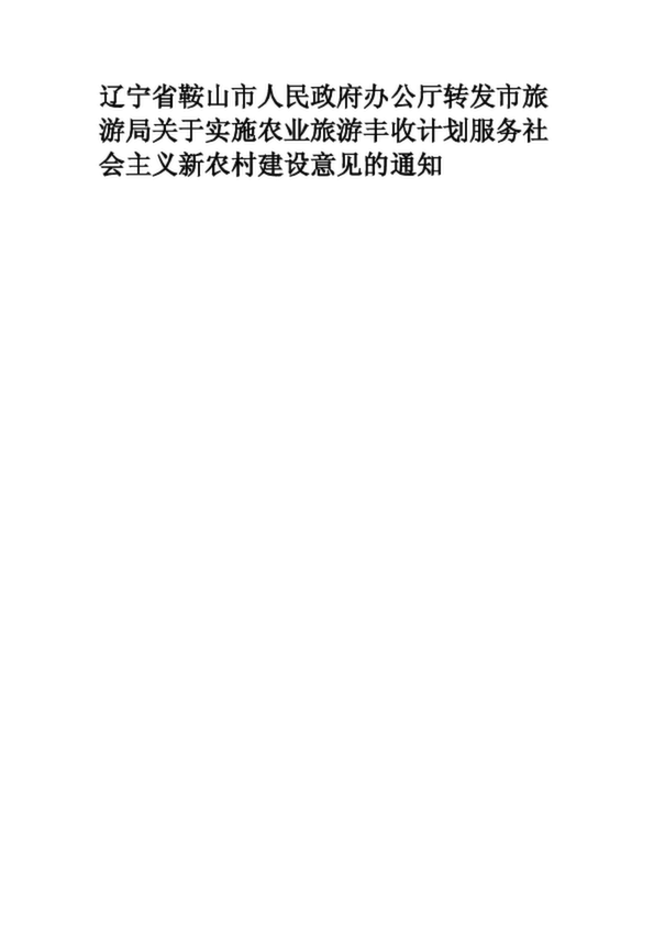 遼寧省鞍山市人民政府辦公廳轉發市旅游局關于實施農業旅游豐收計劃服務社會主義新農村建設意見的通知