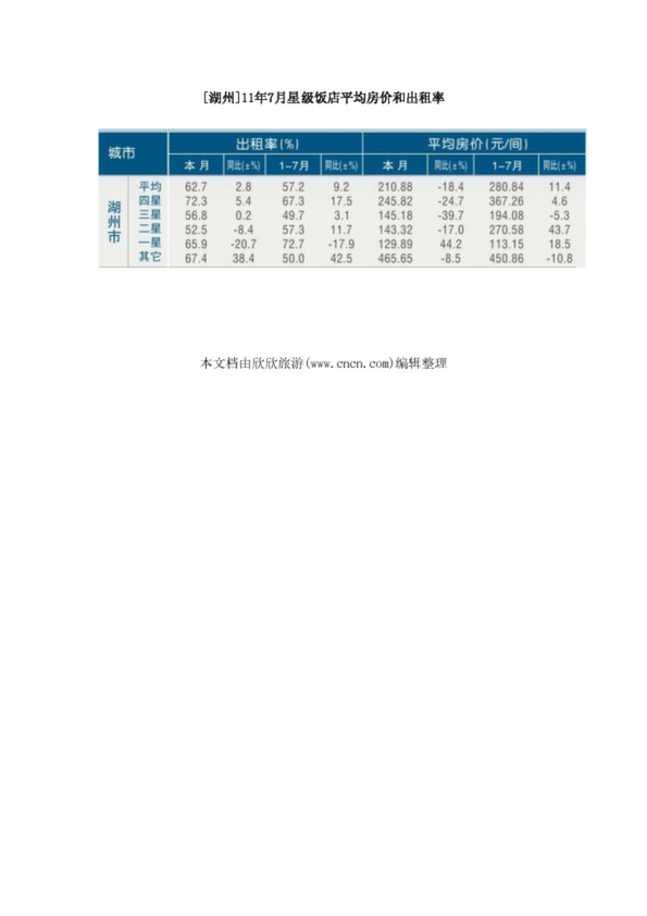 [湖州]11年7月星級飯店平均房價(jià)和出租率