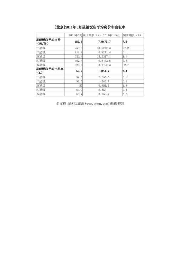 [北京]2011年5月星級(jí)飯店平均房價(jià)和出租率