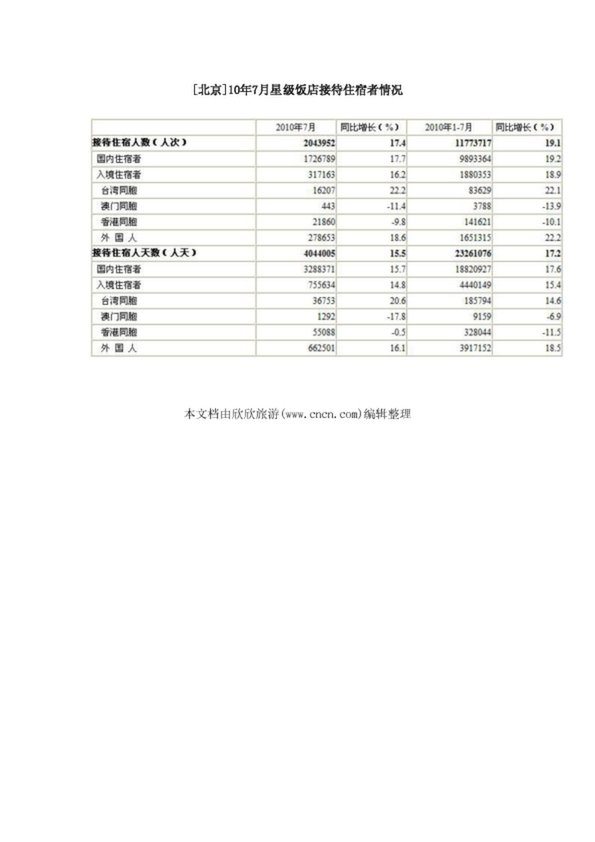[北京]10年7月星級飯店接待住宿者情況(57.50KB)