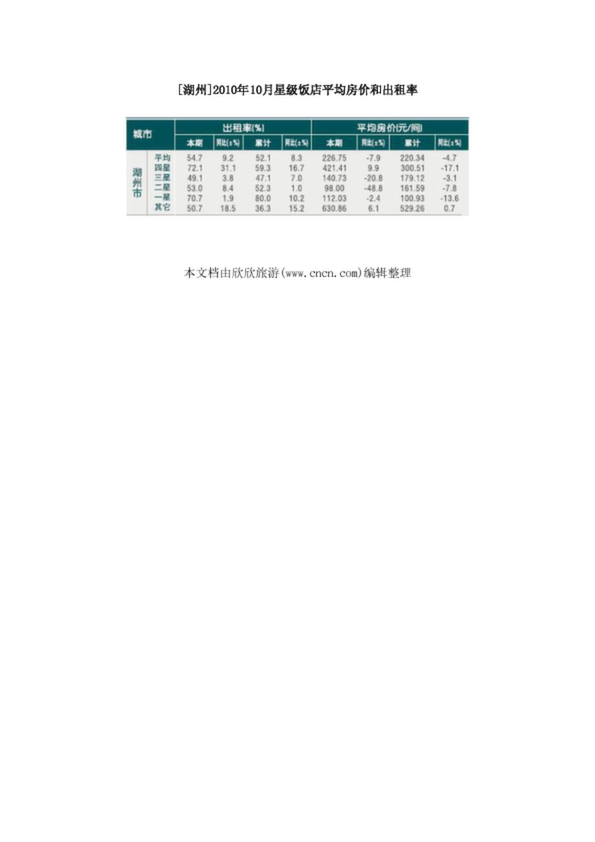 [湖州]2010年10月星級(jí)飯店平均房?jī)r(jià)和出租率