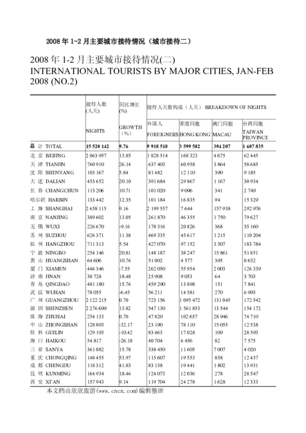 2008年1-2月主要城市接待情況(城市接待二)(0.16MB)