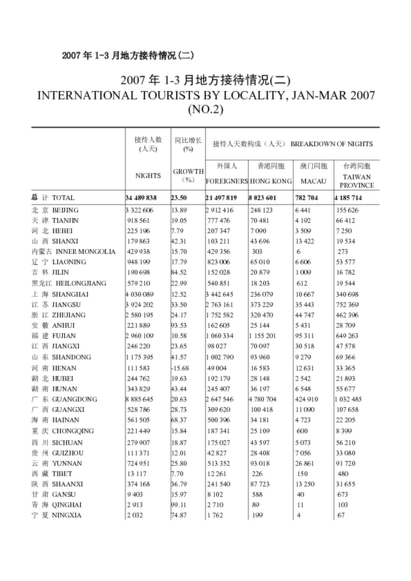 2007年1-3月地方接待情況(二)