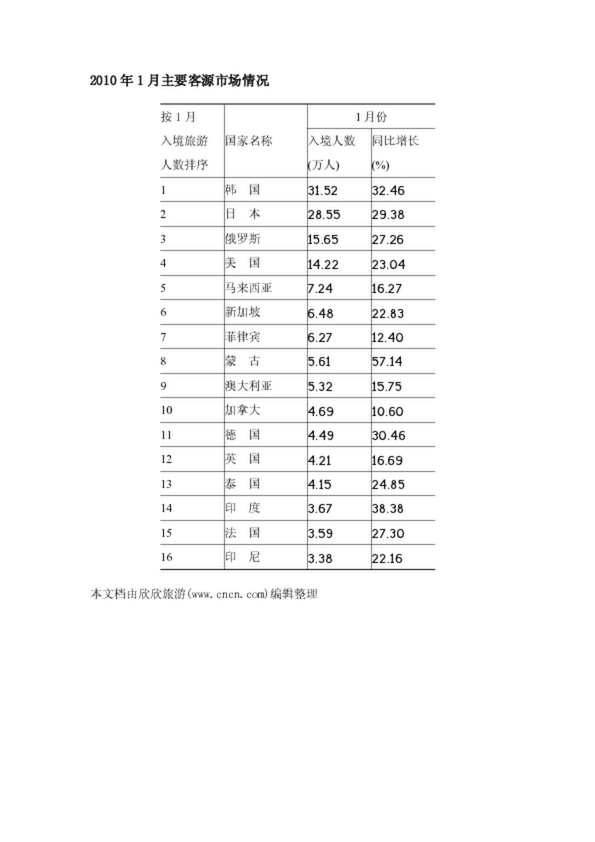 2010年1月主要客源市場情況(25.00KB)