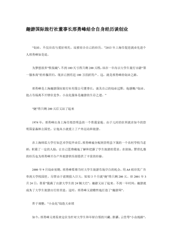 趣游國際旅行社董事長邢勇峰結合自身經歷談創業(13.00KB)